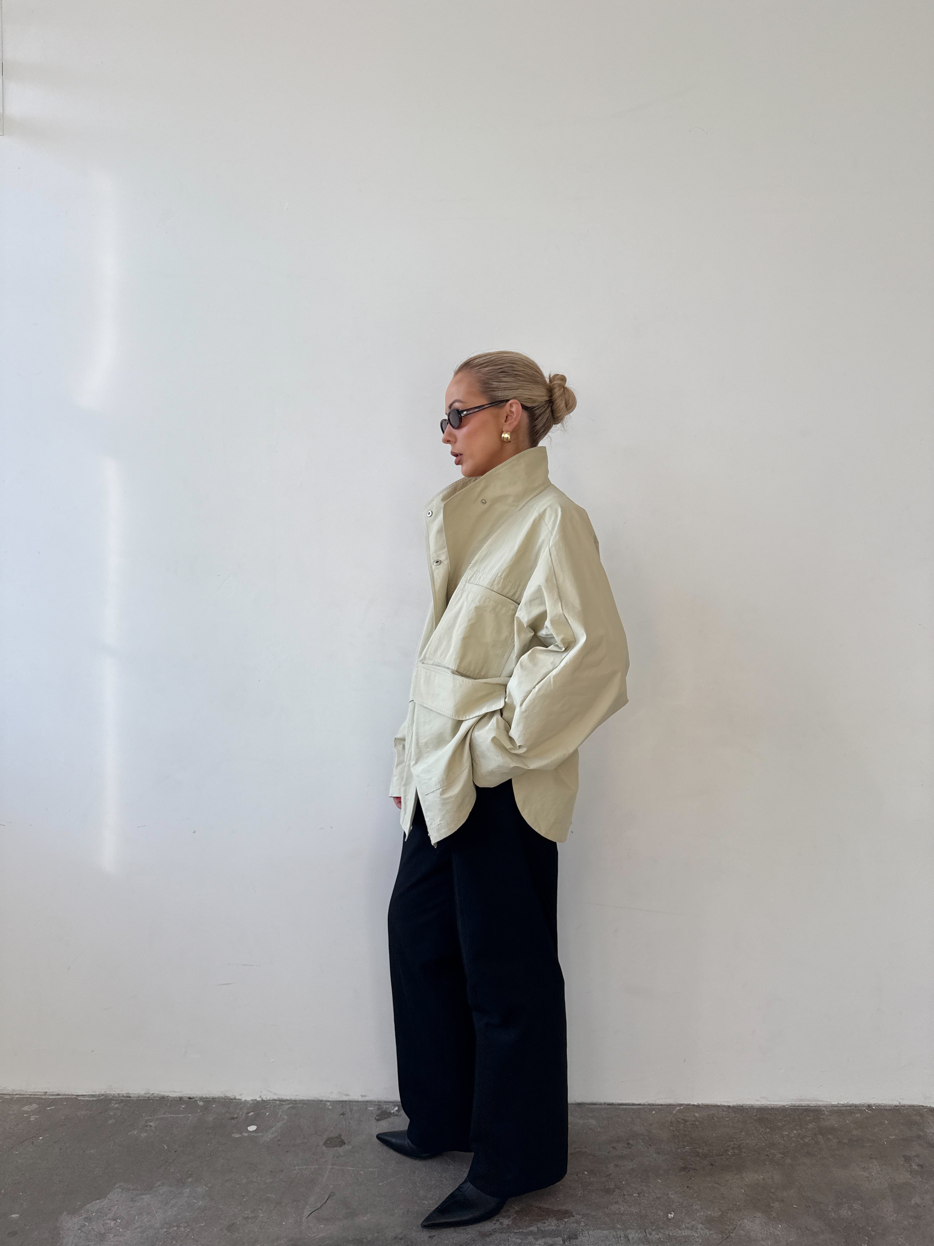 Our understated answer to everyday outerwear; lightweight yet cozy, shower proof, with a quietly elevated silhouette.