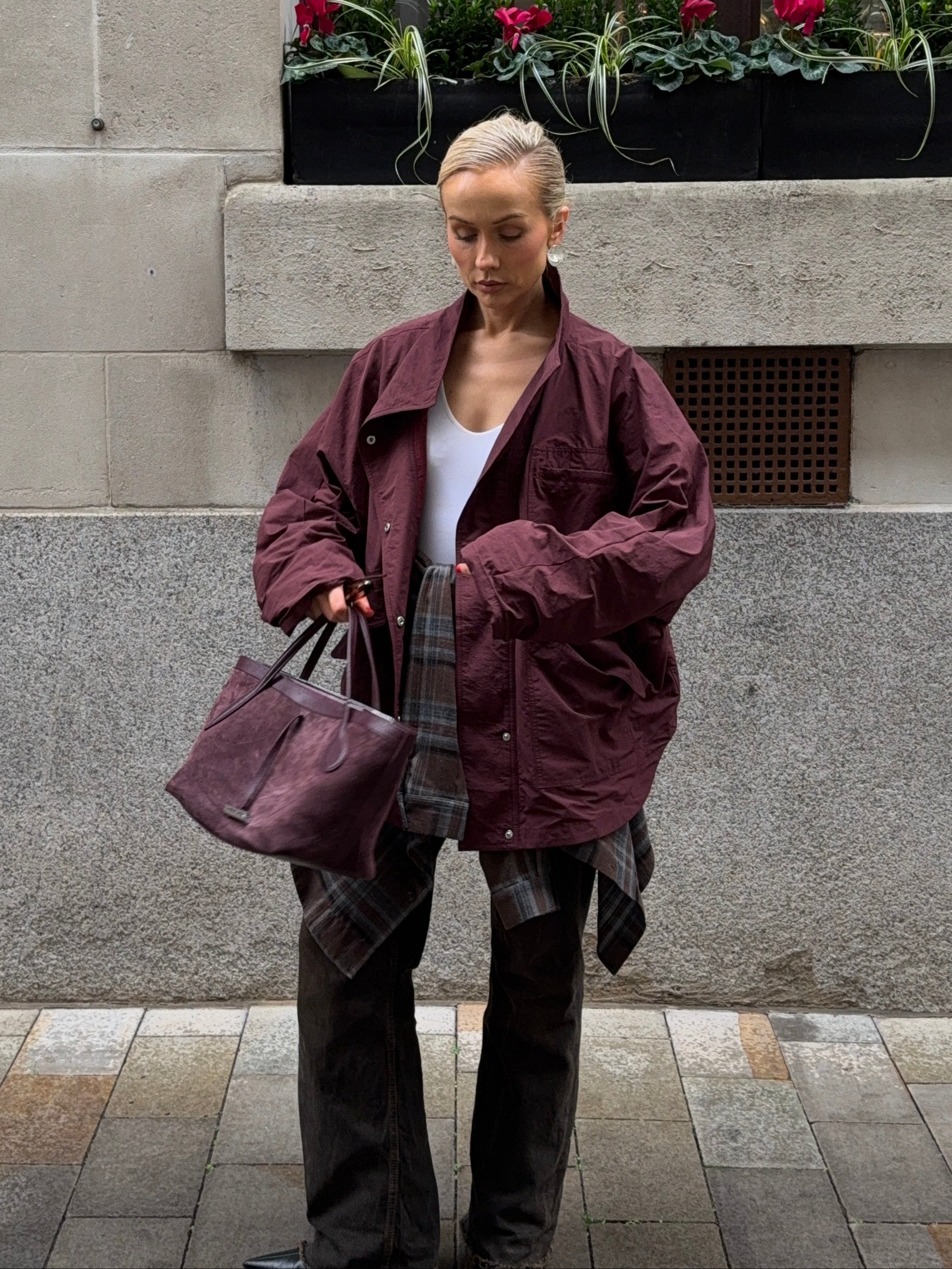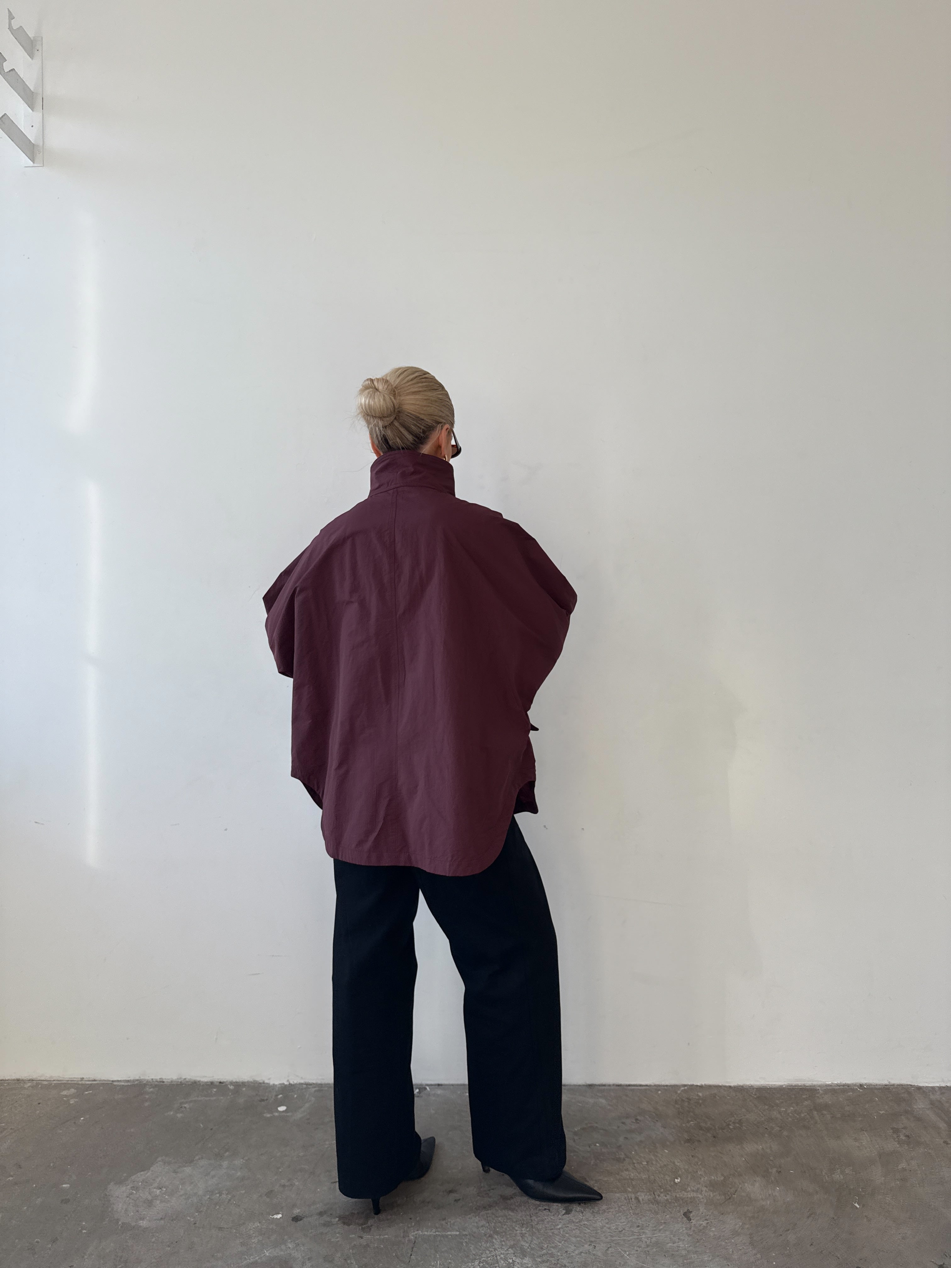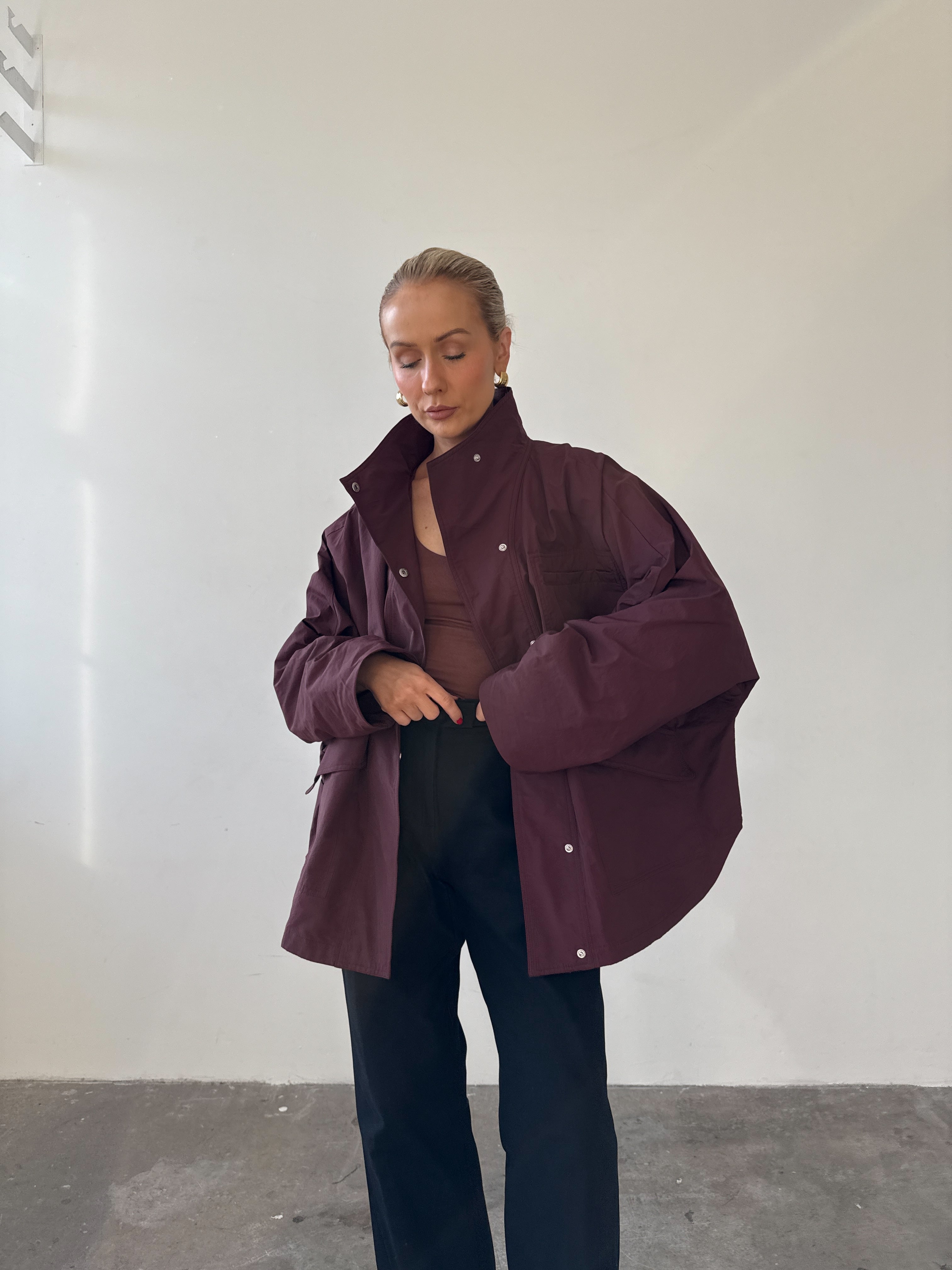 Cut from a cotton–nylon blend, it’s designed to move seamlessly from city to countryside. The high funnel neck and perfectly oversized fit make layering effortless, while three generous patch pockets prove that one is never enough. A coat to throw on with jeans, dresses, or knitwear - an easy winter layer you’ll wear all season.