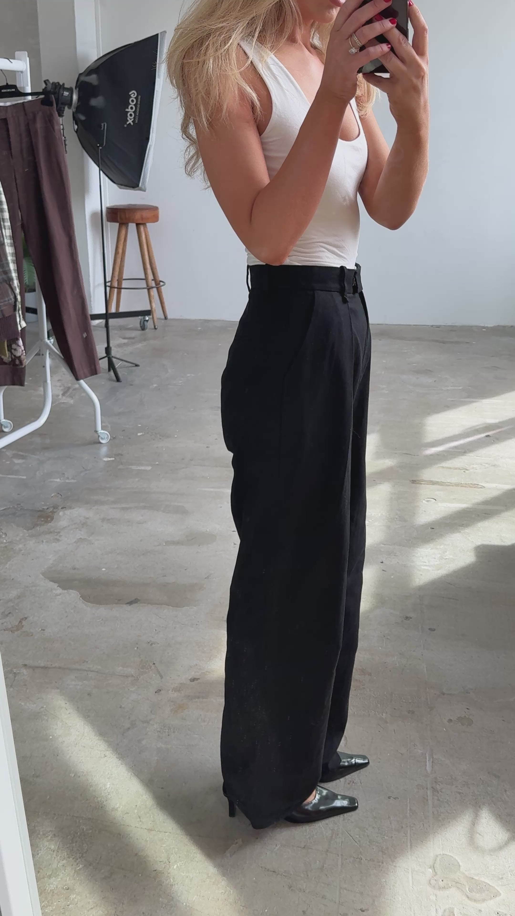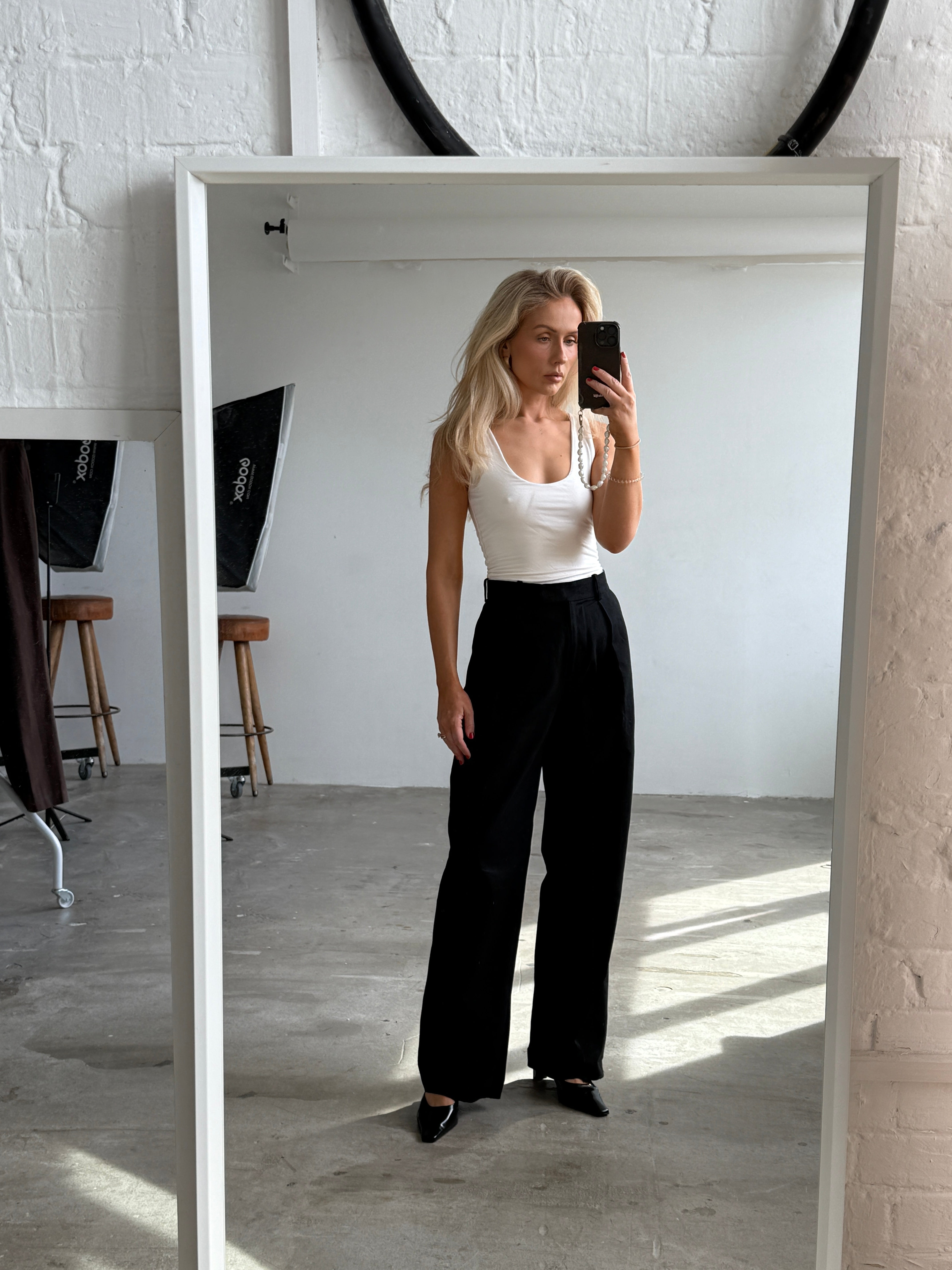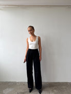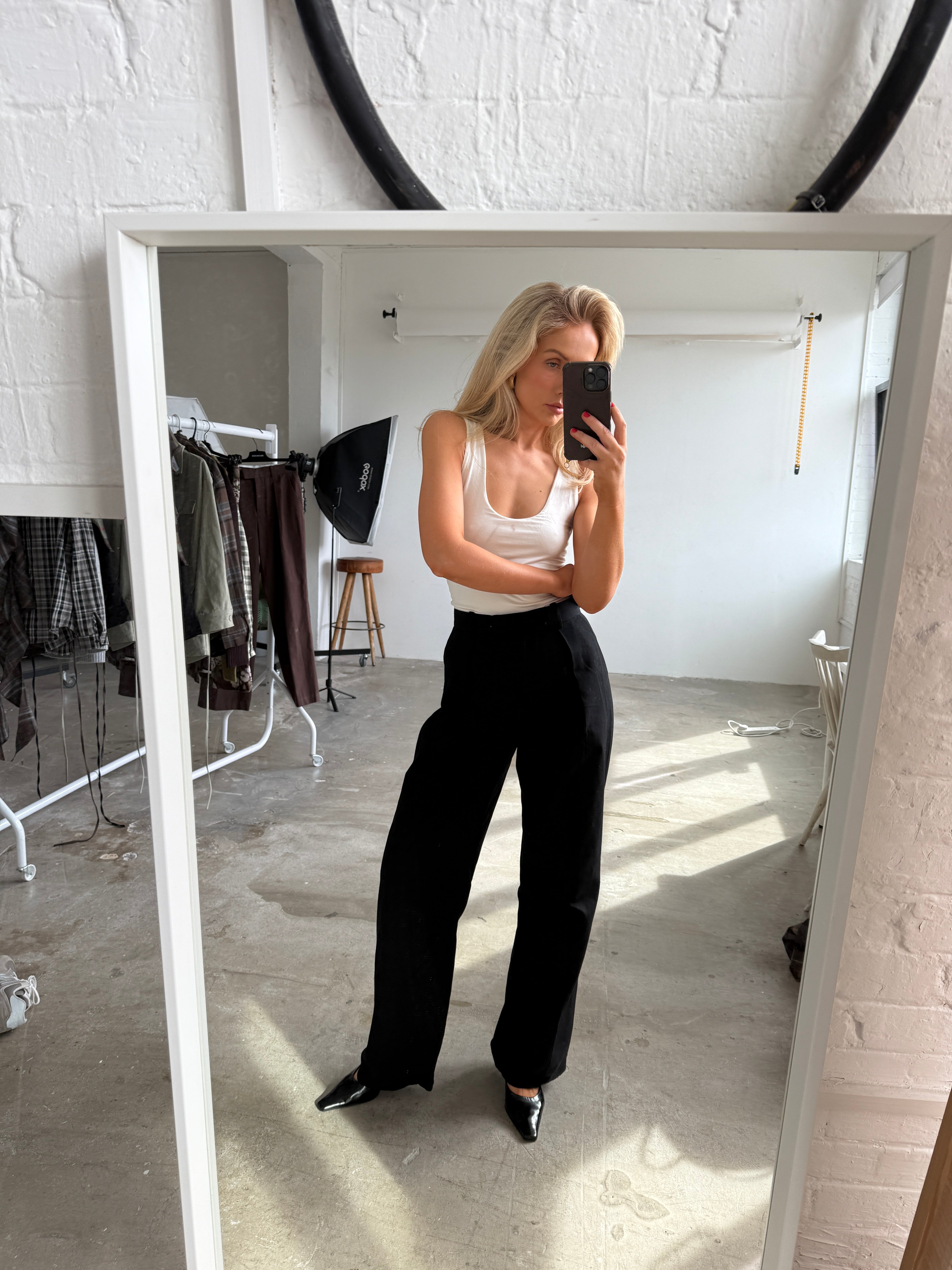 A new essential in the Fuchsia Shaw uniform, these tailored trousers in Jet Black are a refined take on everyday dressing.