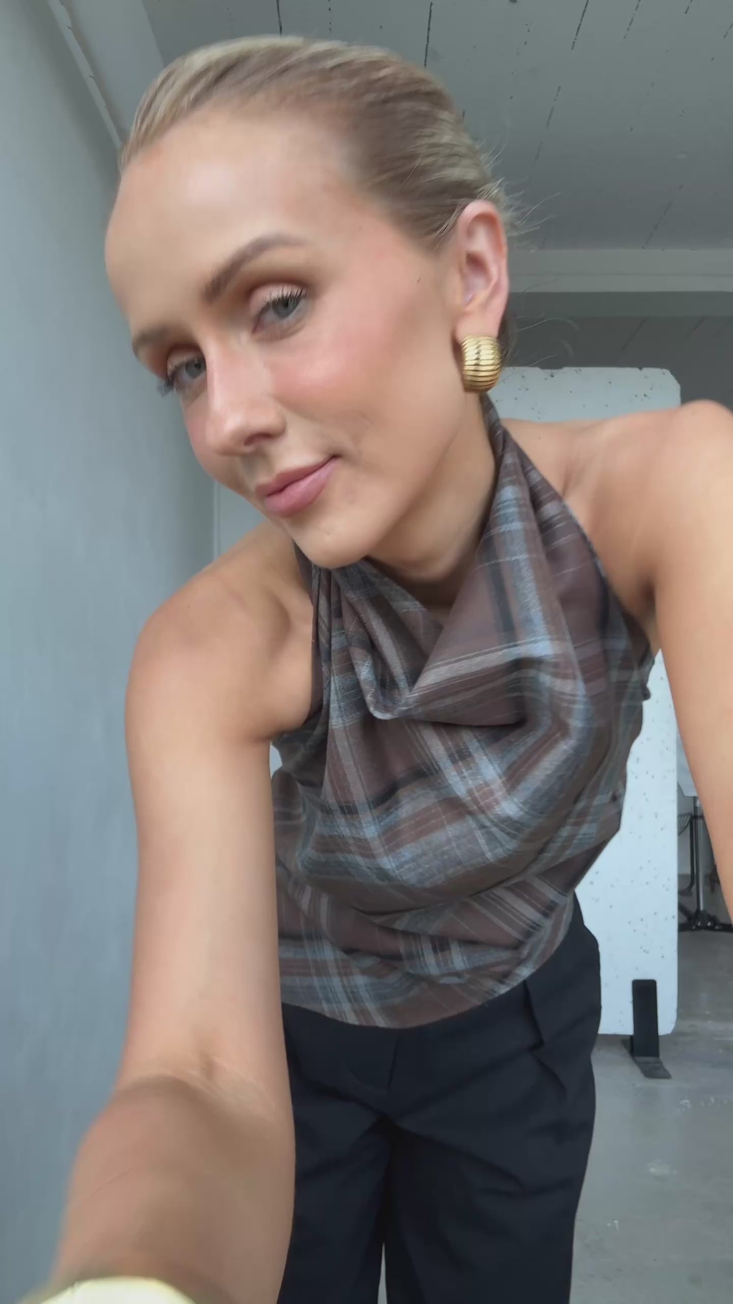 Crafted out of one piece of check fabric, it ties neatly at the back of the neck and waist, revealing an open back that’s equal parts relaxed and refined.