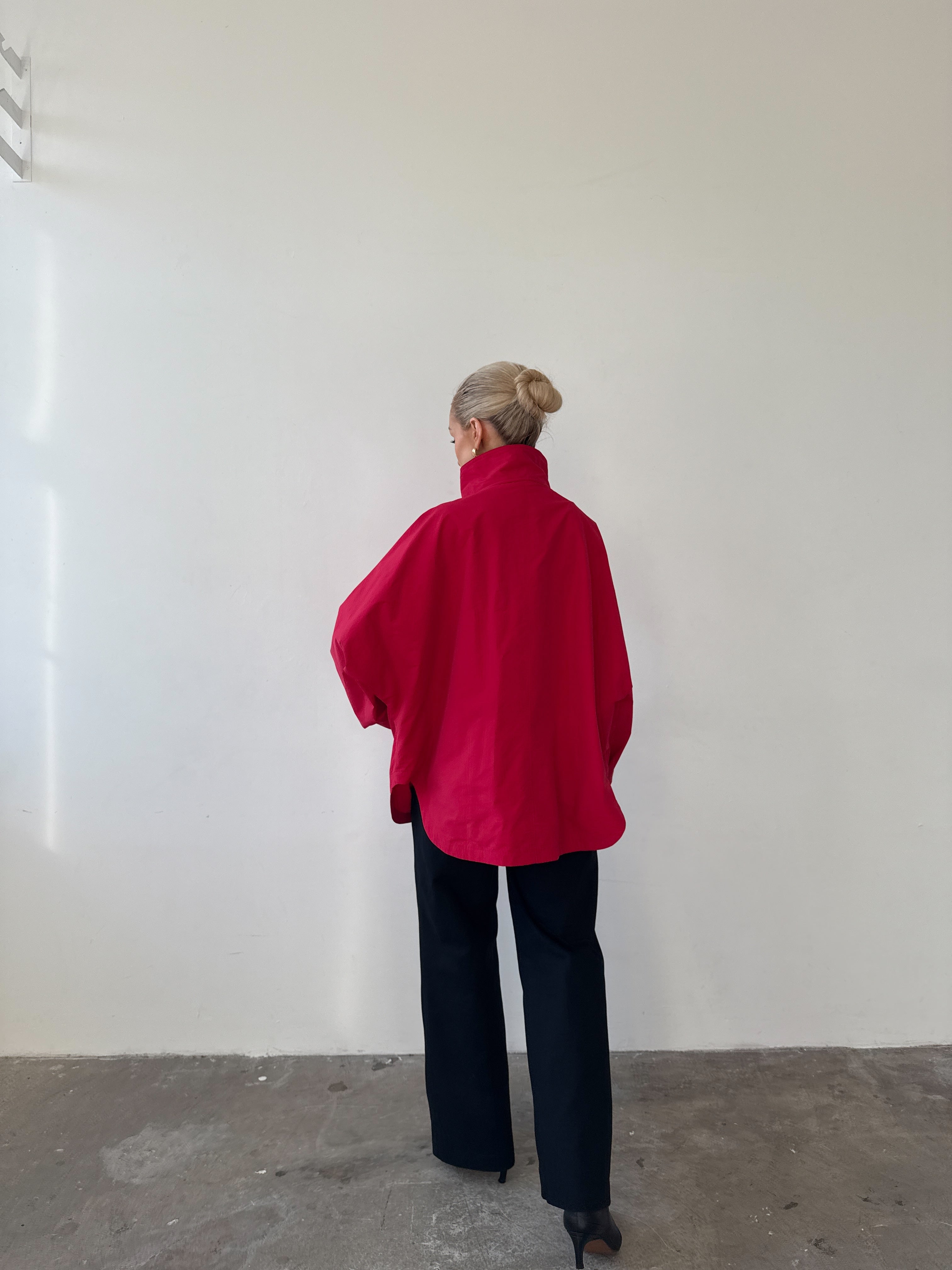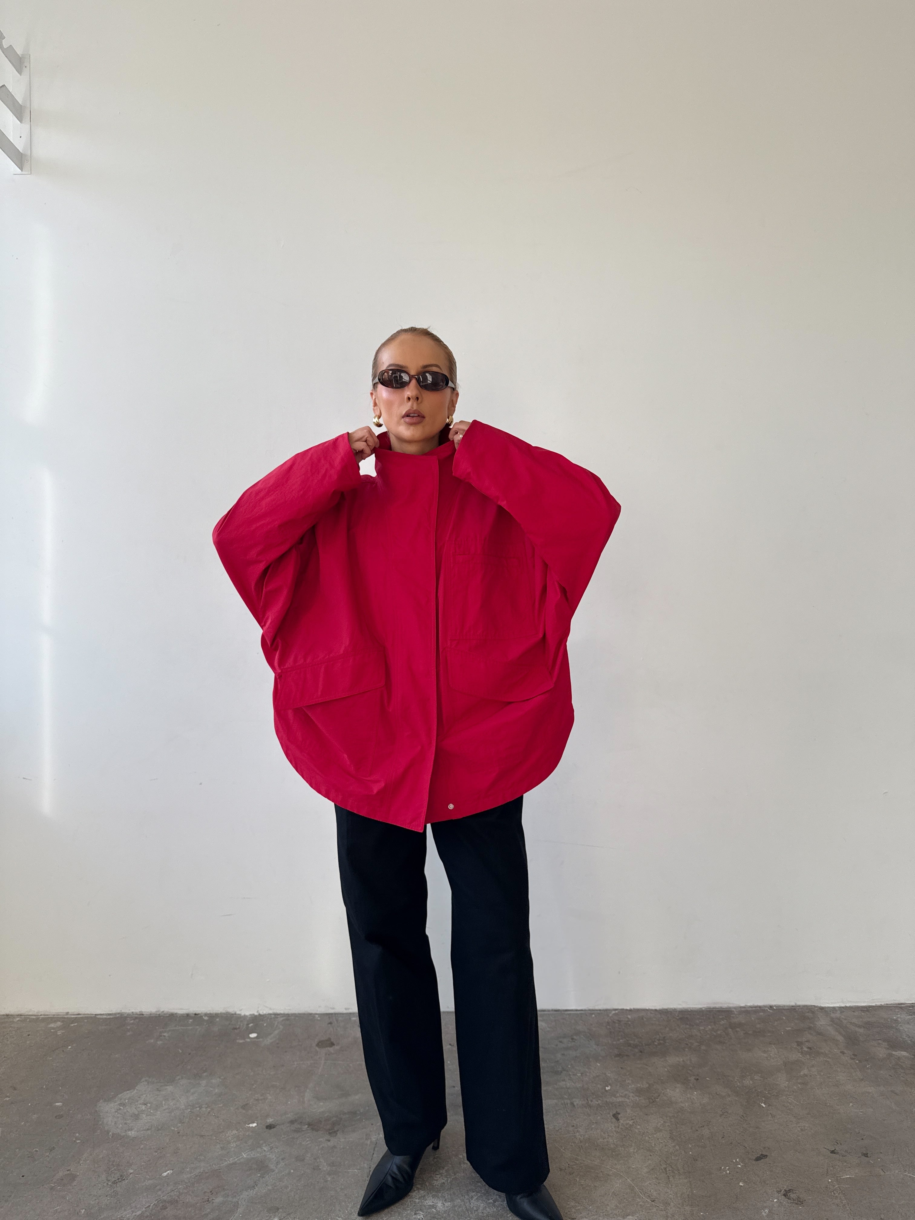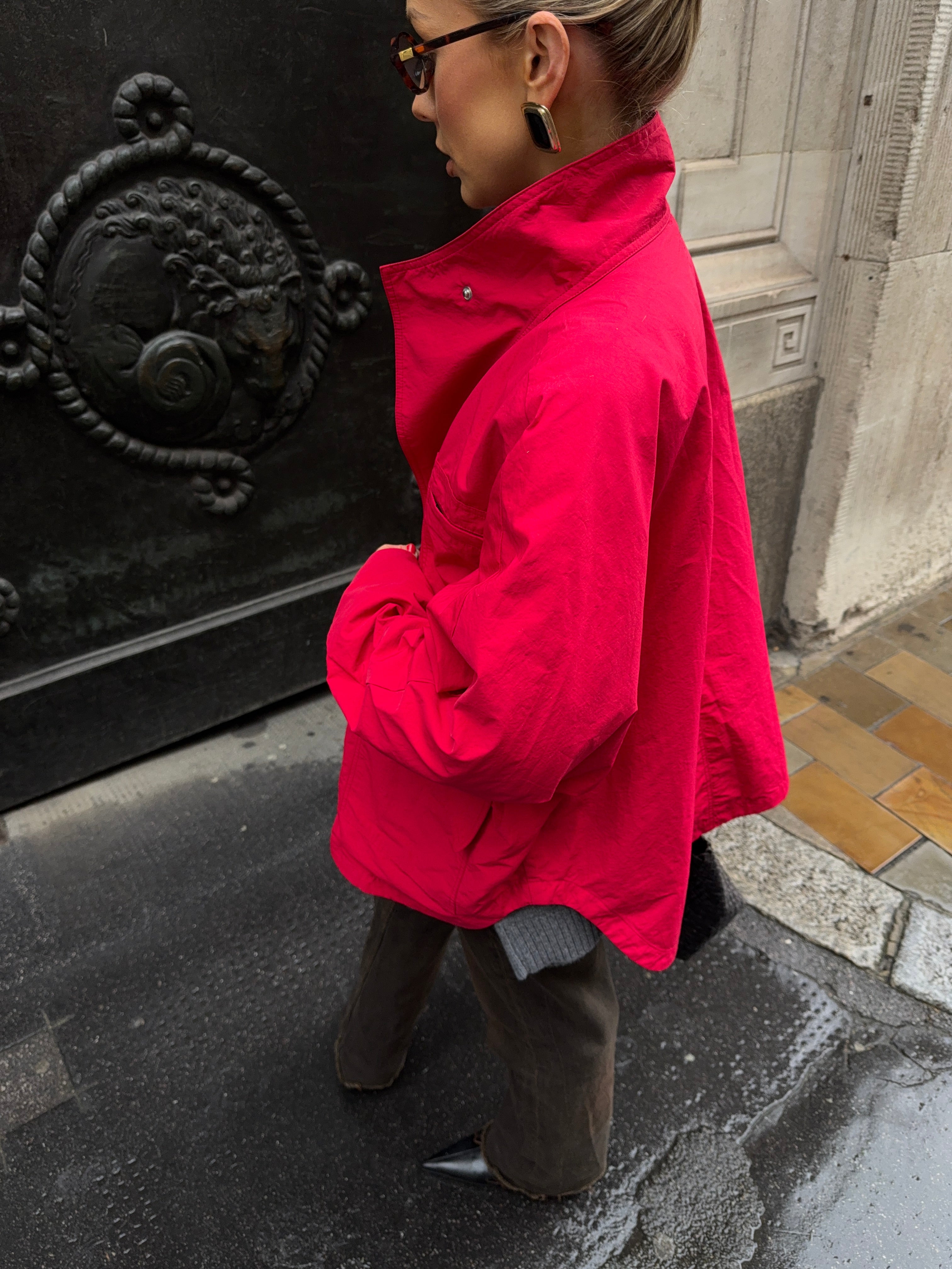 Cut from a cotton–nylon blend, it’s designed to move seamlessly from city to countryside. The high funnel neck and perfectly oversized fit make layering effortless, while three generous patch pockets prove that one is never enough. A coat to throw on with jeans, dresses, or knitwear - an easy winter layer you’ll wear all season.