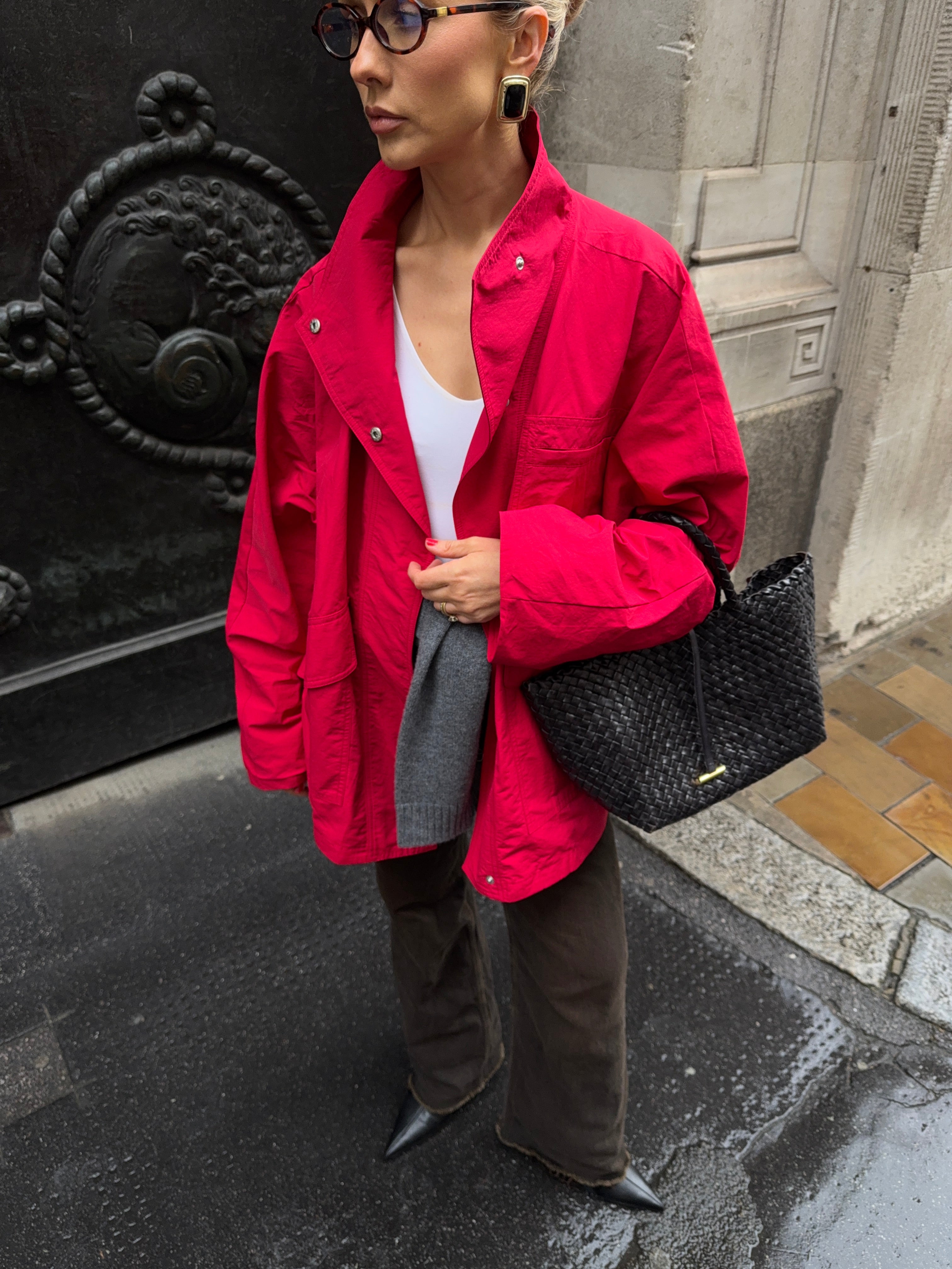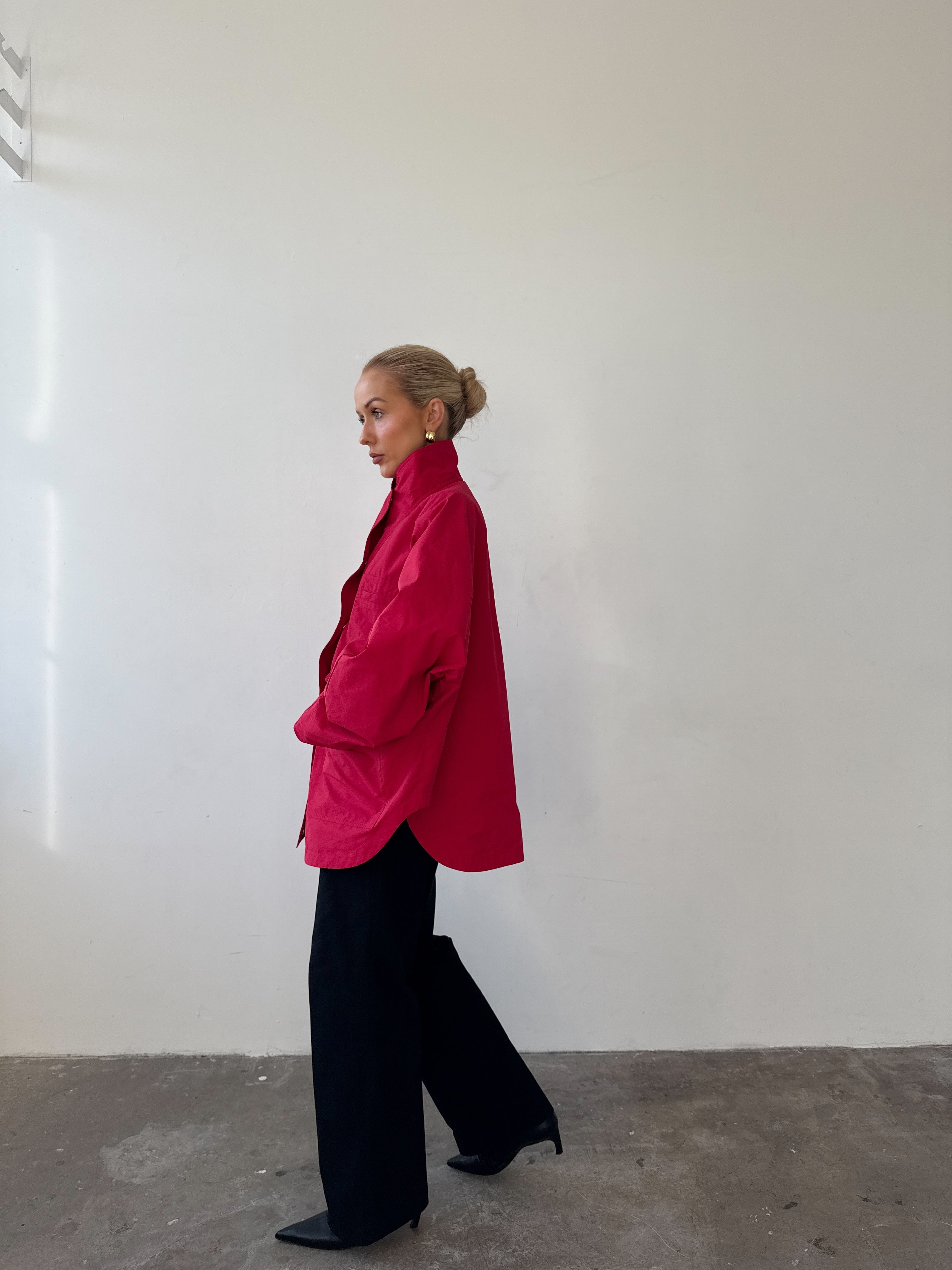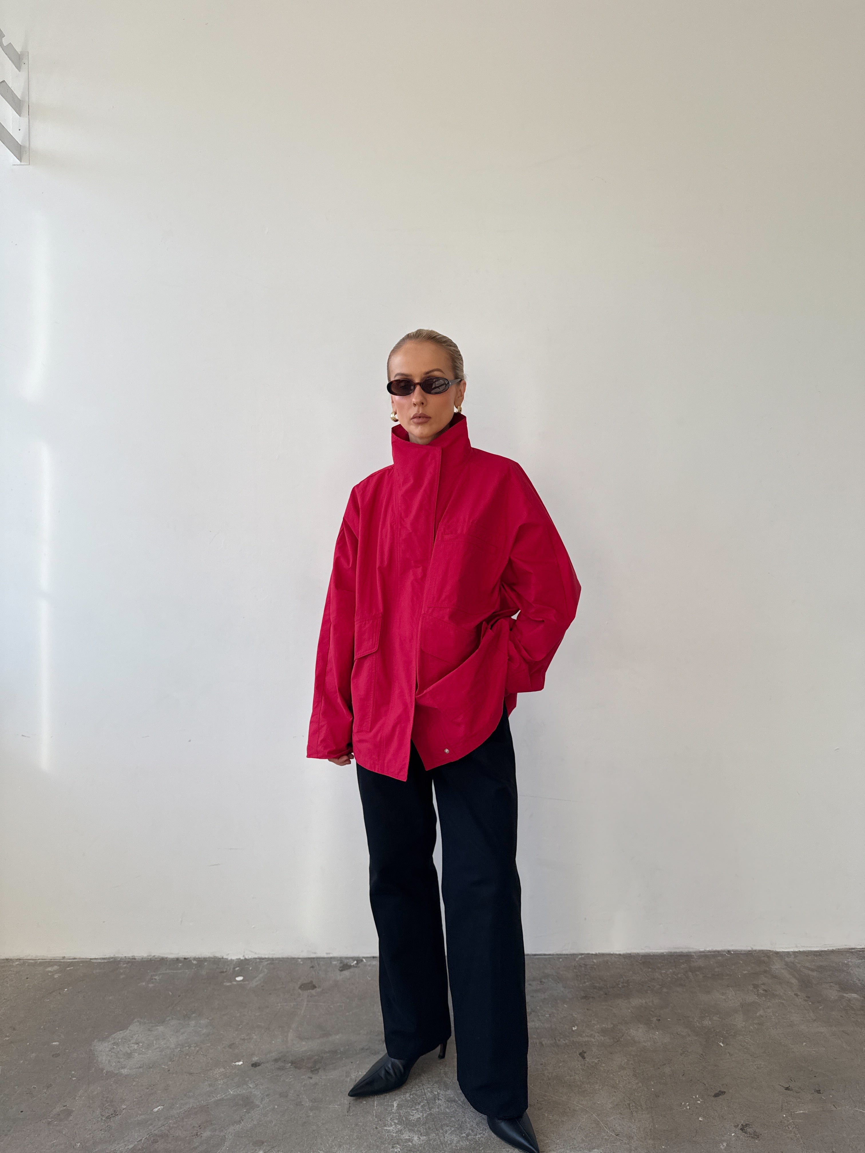Cut from a cotton–nylon blend, it’s designed to move seamlessly from city to countryside. The high funnel neck and perfectly oversized fit make layering effortless, while three generous patch pockets prove that one is never enough. A coat to throw on with jeans, dresses, or knitwear - an easy winter layer you’ll wear all season.