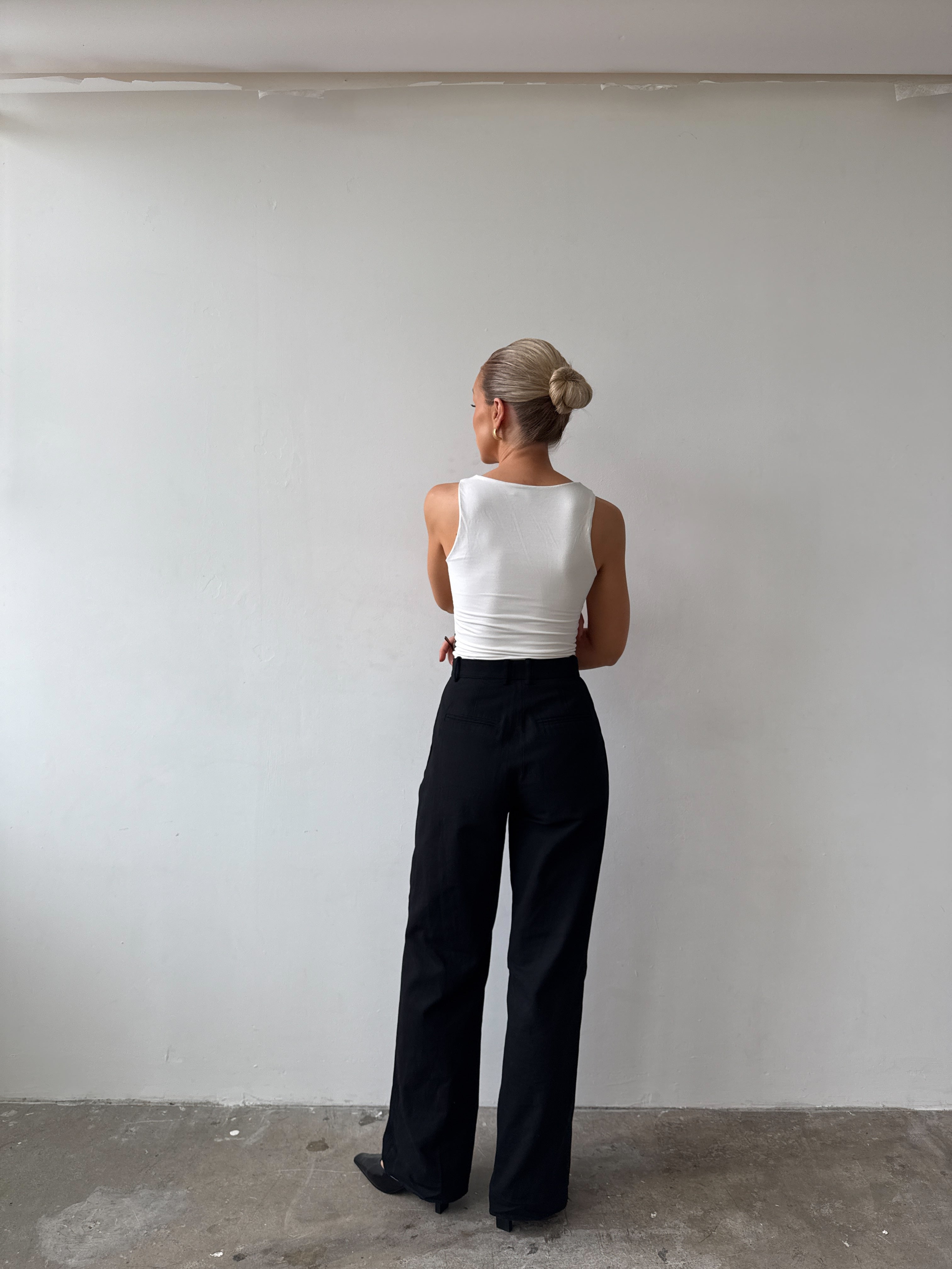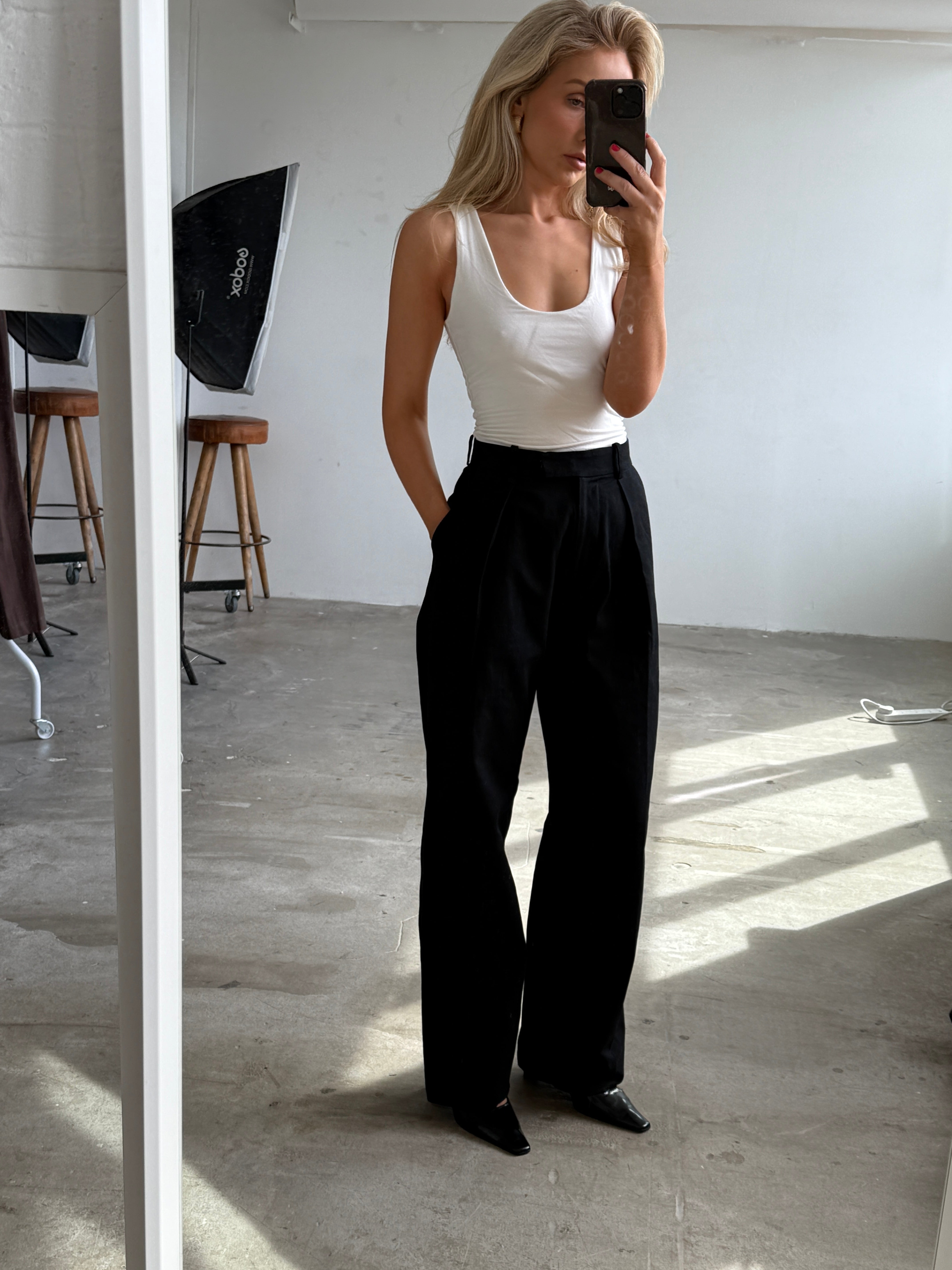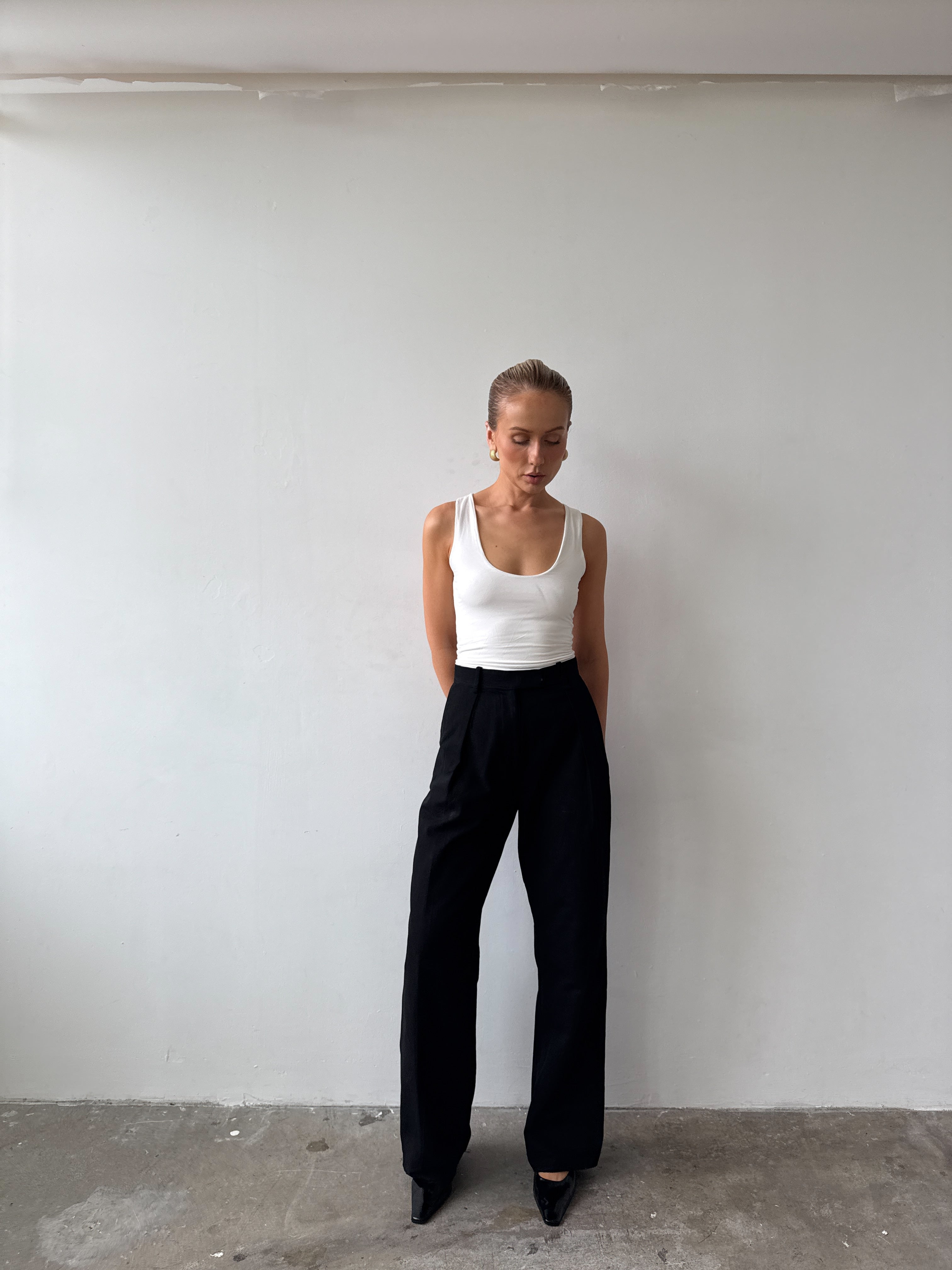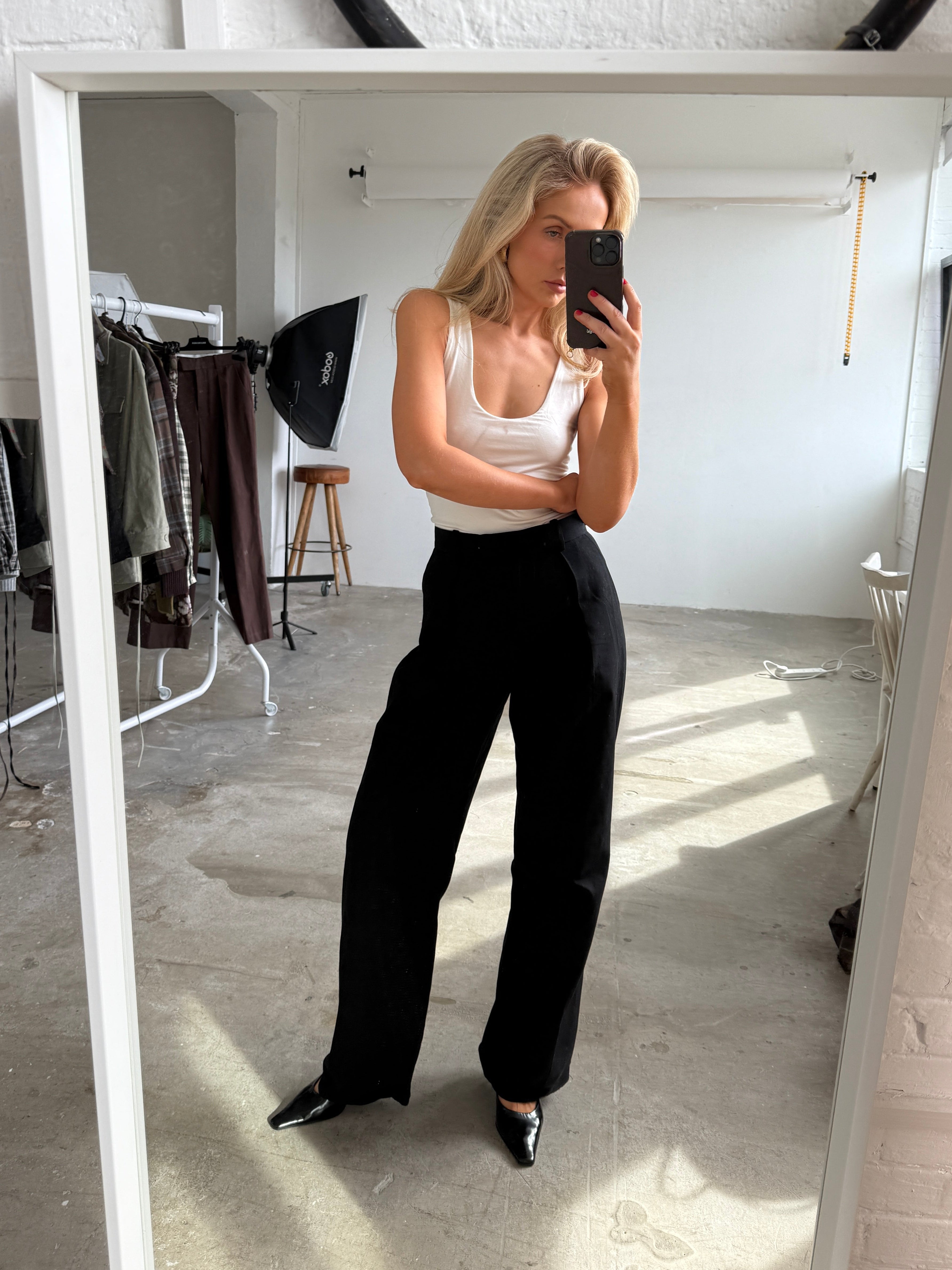 A new essential in the Fuchsia Shaw uniform, these tailored trousers in Jet Black are a refined take on everyday dressing.